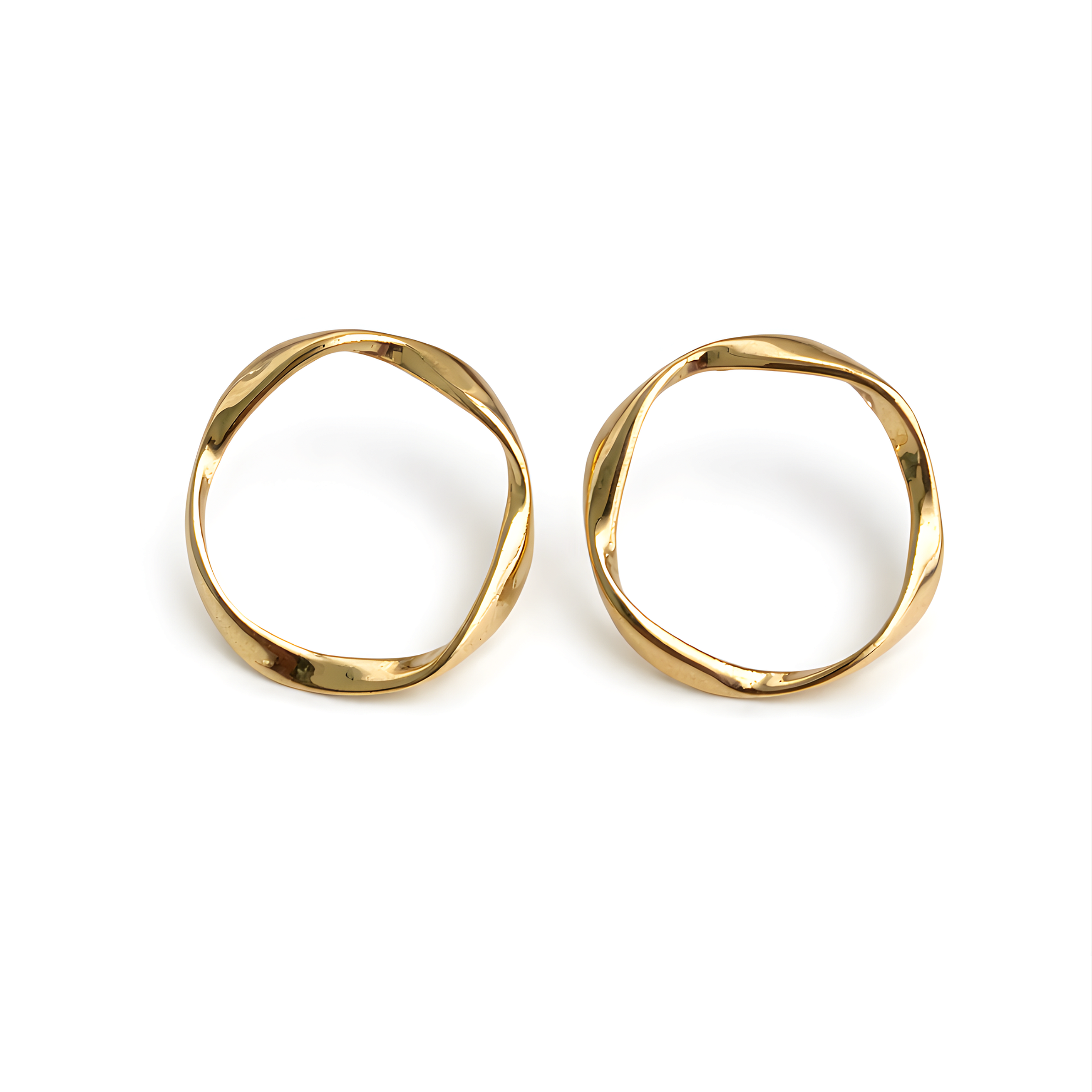 Brinco em formato arredondado, com linhas irregulares e design fluido que remetem ao movimento natural das formas. Acabamento polido, proporcionando brilho sofisticado e visual contemporâneo.