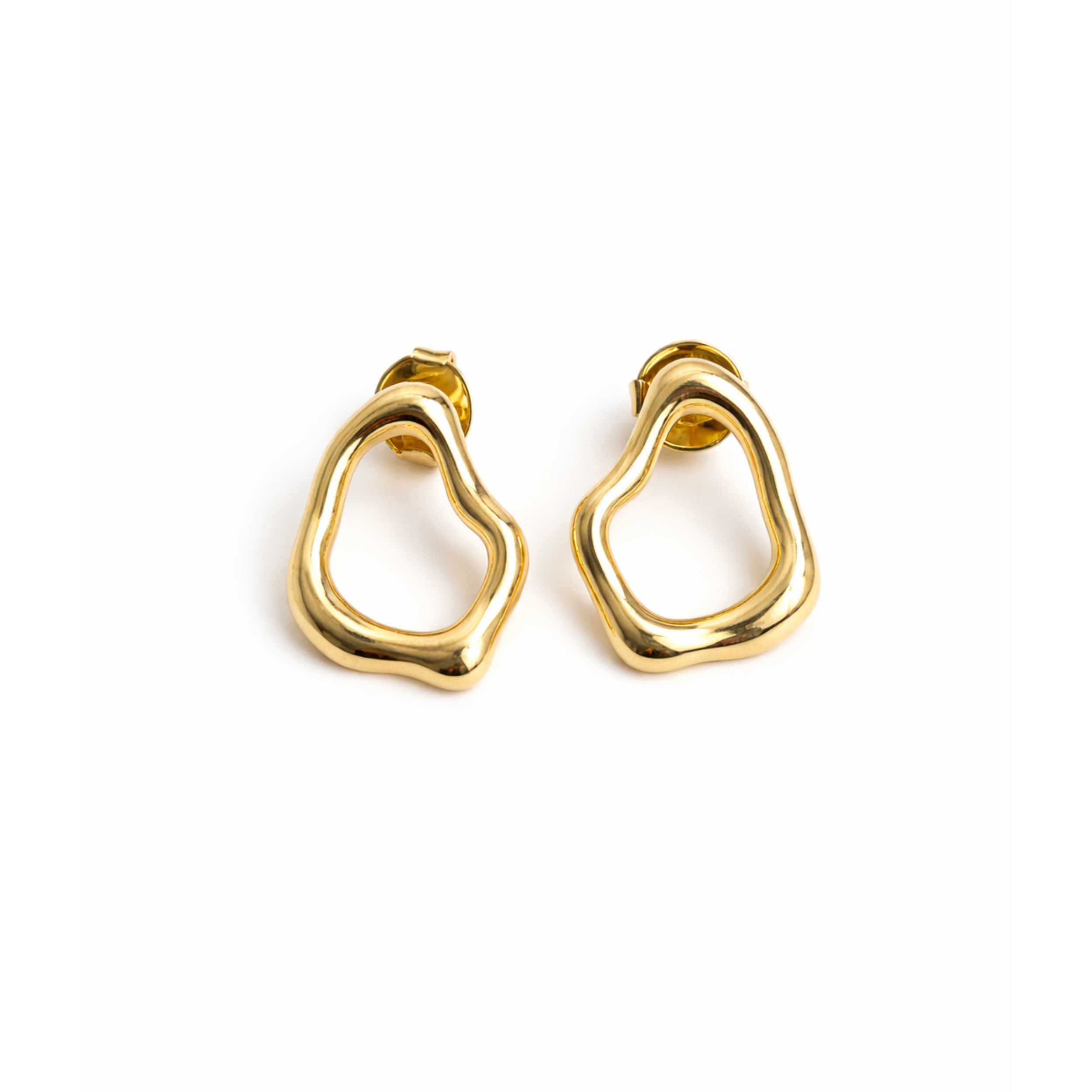 Brinco de design orgânico com contorno suave, inspirado em formas naturais e movimento fluido. Possui acabamento polido que reflete luz com elegância e delicadeza.