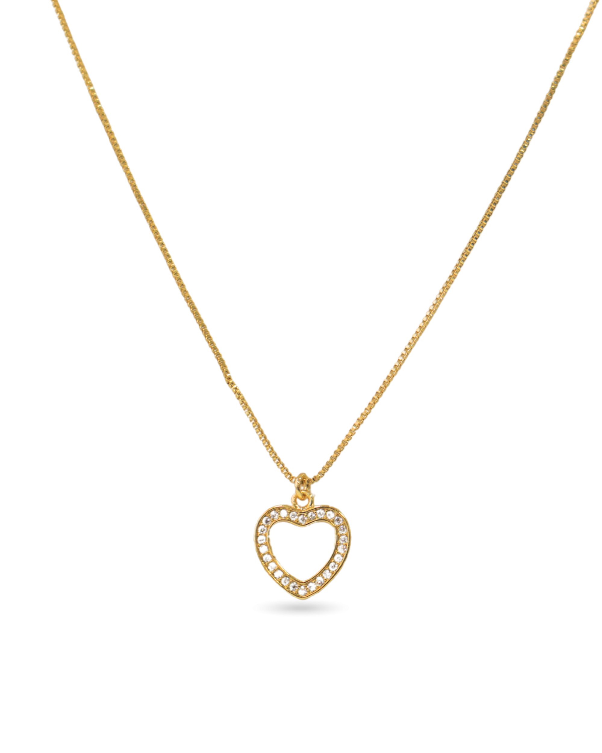 Este colar apresenta um design romântico e moderno, destacando um pingente de coração vazado que traz leveza à peça. O contorno do coração é inteiramente cravejado de zircônias brancas, que em contraste com o luxuoso banho em ouro 18k, proporcionam um brilho intenso e sofisticado.