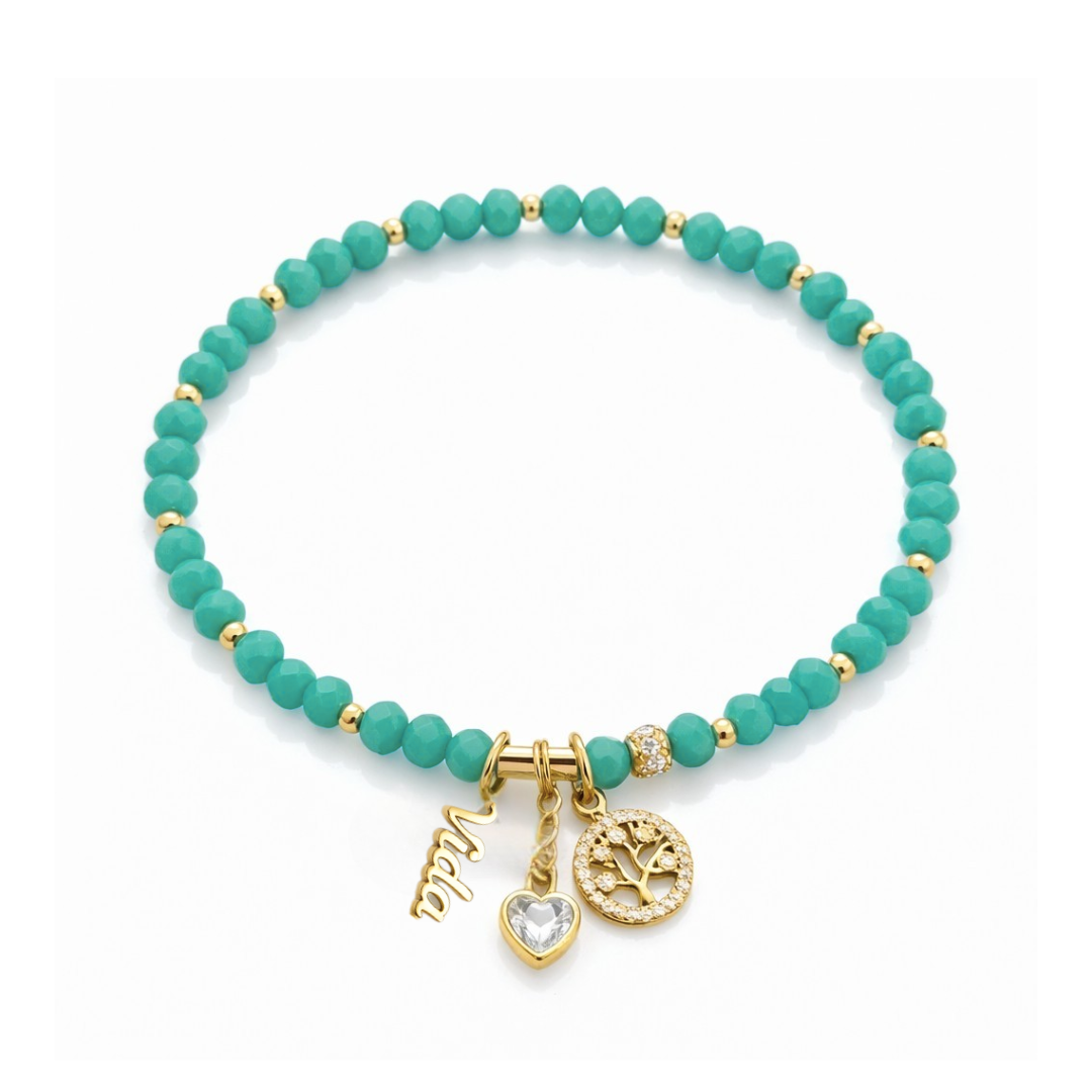 A Pulseira com Cristais Verdes e Pingentes Vida combina a vivacidade dos tons esmeralda com o brilho sofisticado do ouro. Seus cristais possuem lapidação facetada que garante alta intensidade de luz, enquanto os pingentes trazem um detalhe moderno e fluido ao design. Uma peça leve e autêntica, perfeita para adicionar cor e elegância à sua composição.